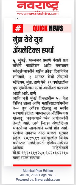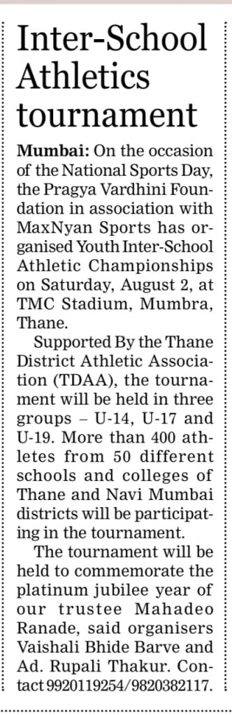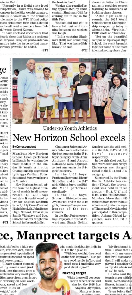 युवा अॅथलेटिक्स स्पर्धेत ऐरोलीच्या न्यू होरायझन स्कूलचे घवघवीत यश